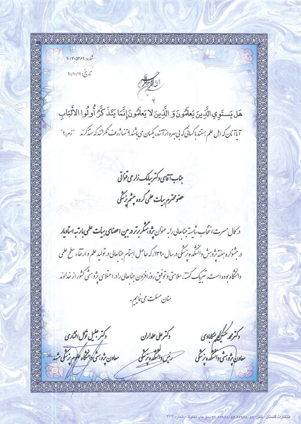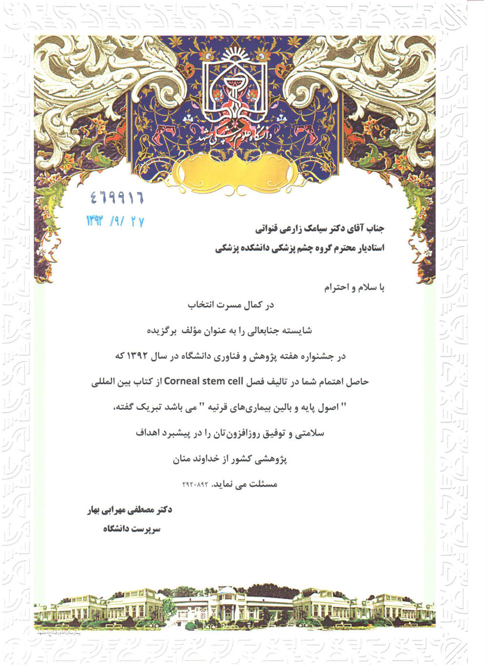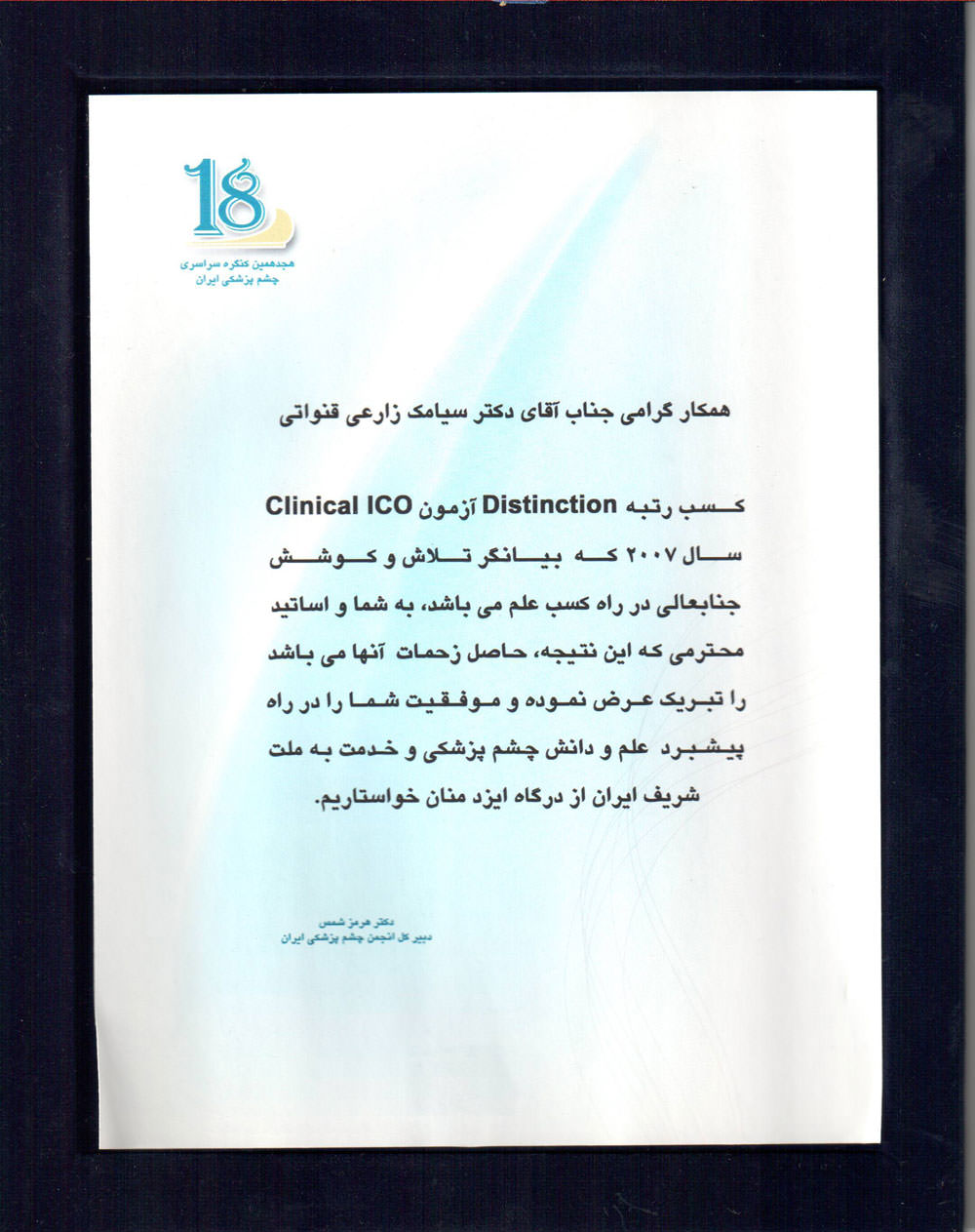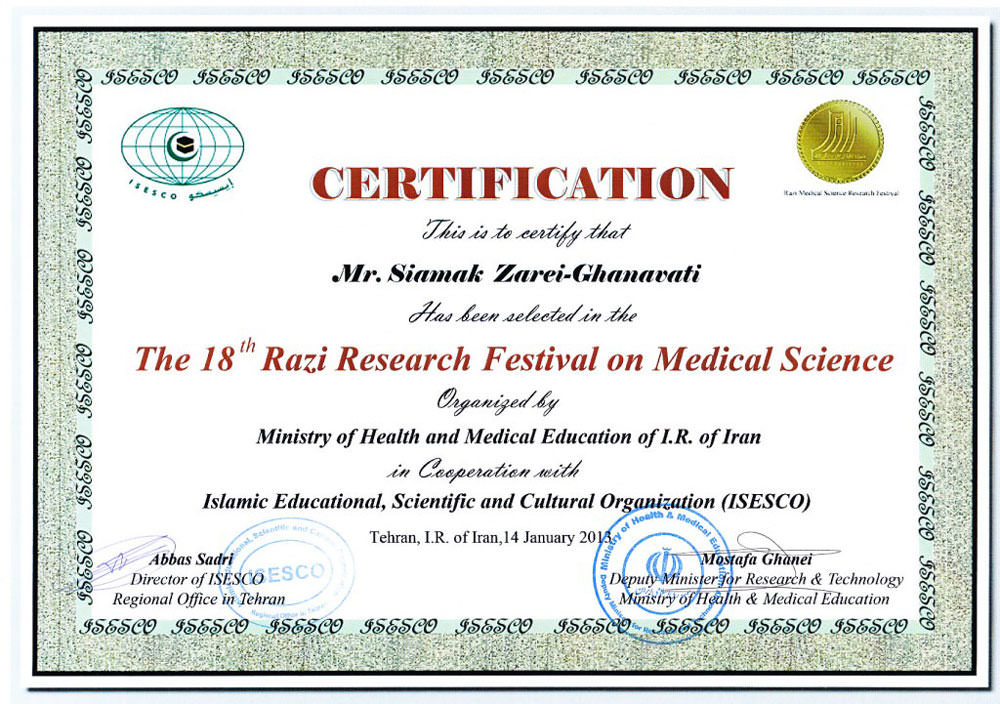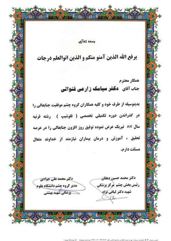 افتخارات دکتر سیامک زارعی قنواتی