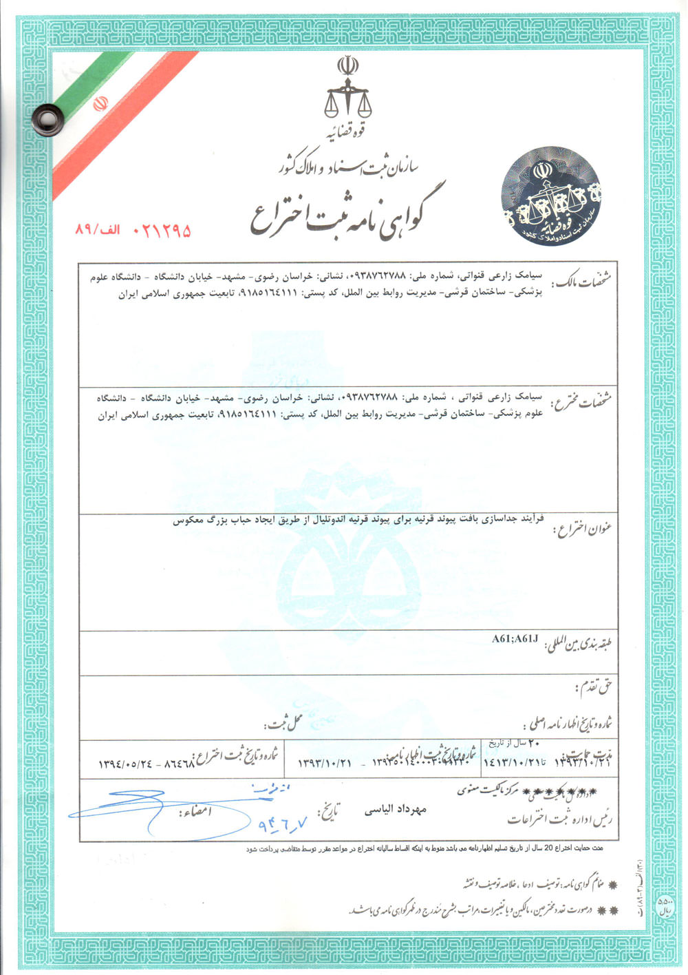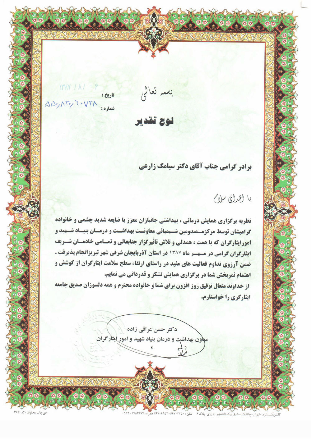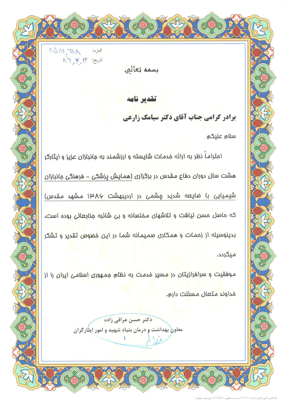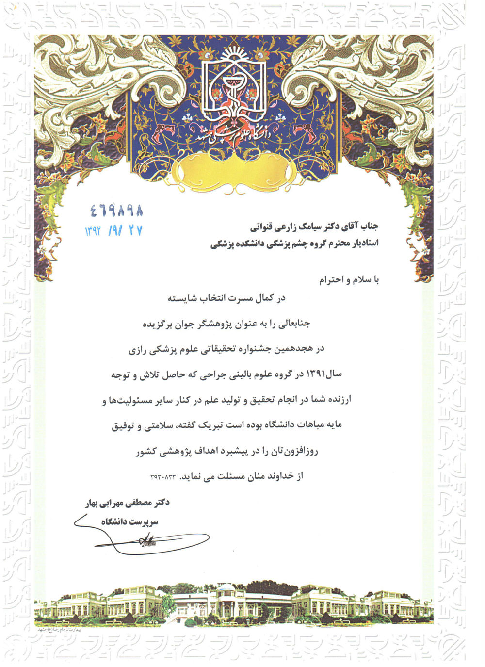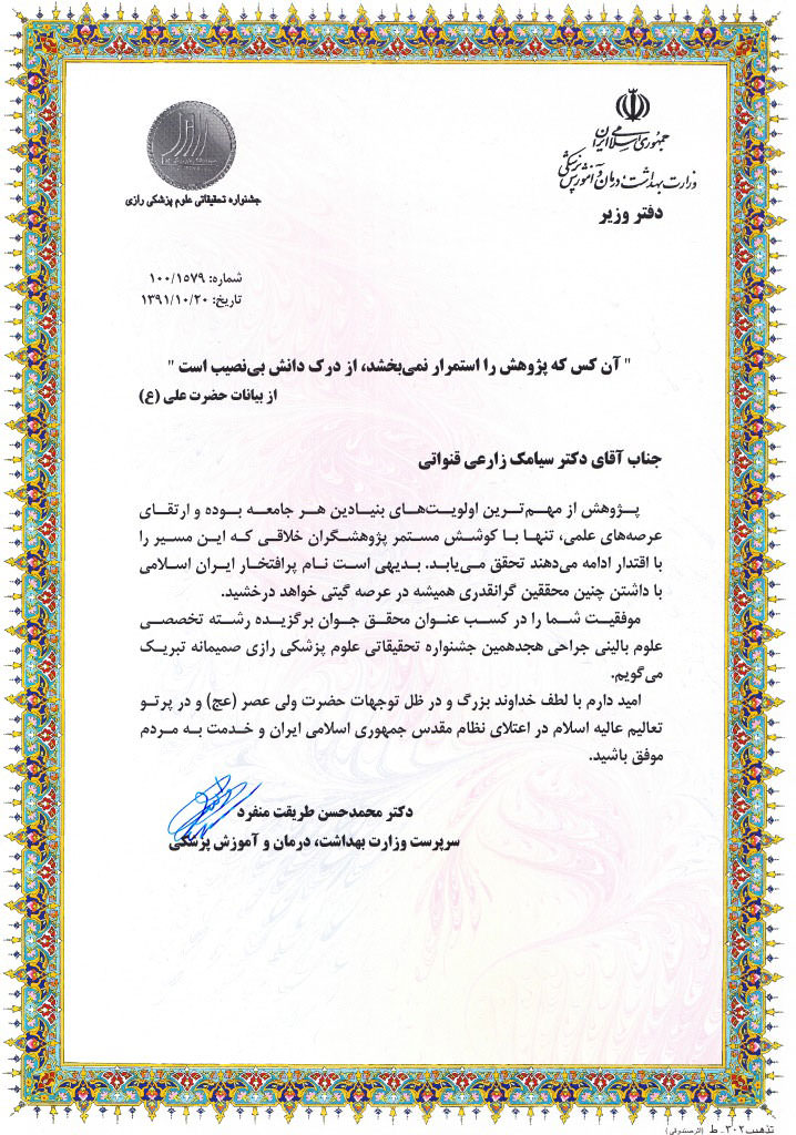 افتخارات دکتر سیامک زارعی قنواتی